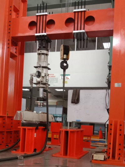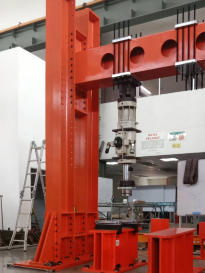 Structural about material properties testing machine, capable of withstanding static loads up to 1000kN. or can load Dynamic (Fatigue) For example, a set of structures for testing railway sleepers. Structural set for pressing the rails, Structural set for testing scaffolding, Structural set for testing auto parts etc. According to standard such as EN Standard etc.