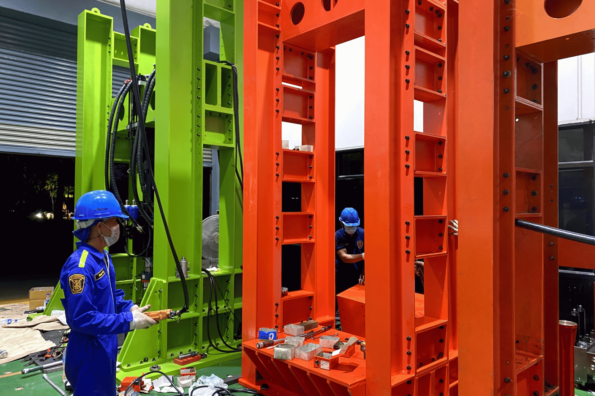 ชุดโครงสร้างสำหรับเครื่องทดสอบคุณสมบัติวัสดุ สามารถทนโหลด Static ได้สูงถึง 1000kN หรือโหลด Dynamic (Fatigue) ได้ เช่น ชุดโครงสร้างสำหรับการกดเทสหมอนรถไฟ ชุดโครงสร้างสำหรับการกดเทสรางรถไฟ ชุดโครงสร้างสำหรับการกดเทสนั่งร้าน ชุดโครงสร้างสำหรับการกดเทสชิ้นส่วนรถยนต์ เป็นต้น ตามารถฐานเช่น EN Standard เป็นต้น